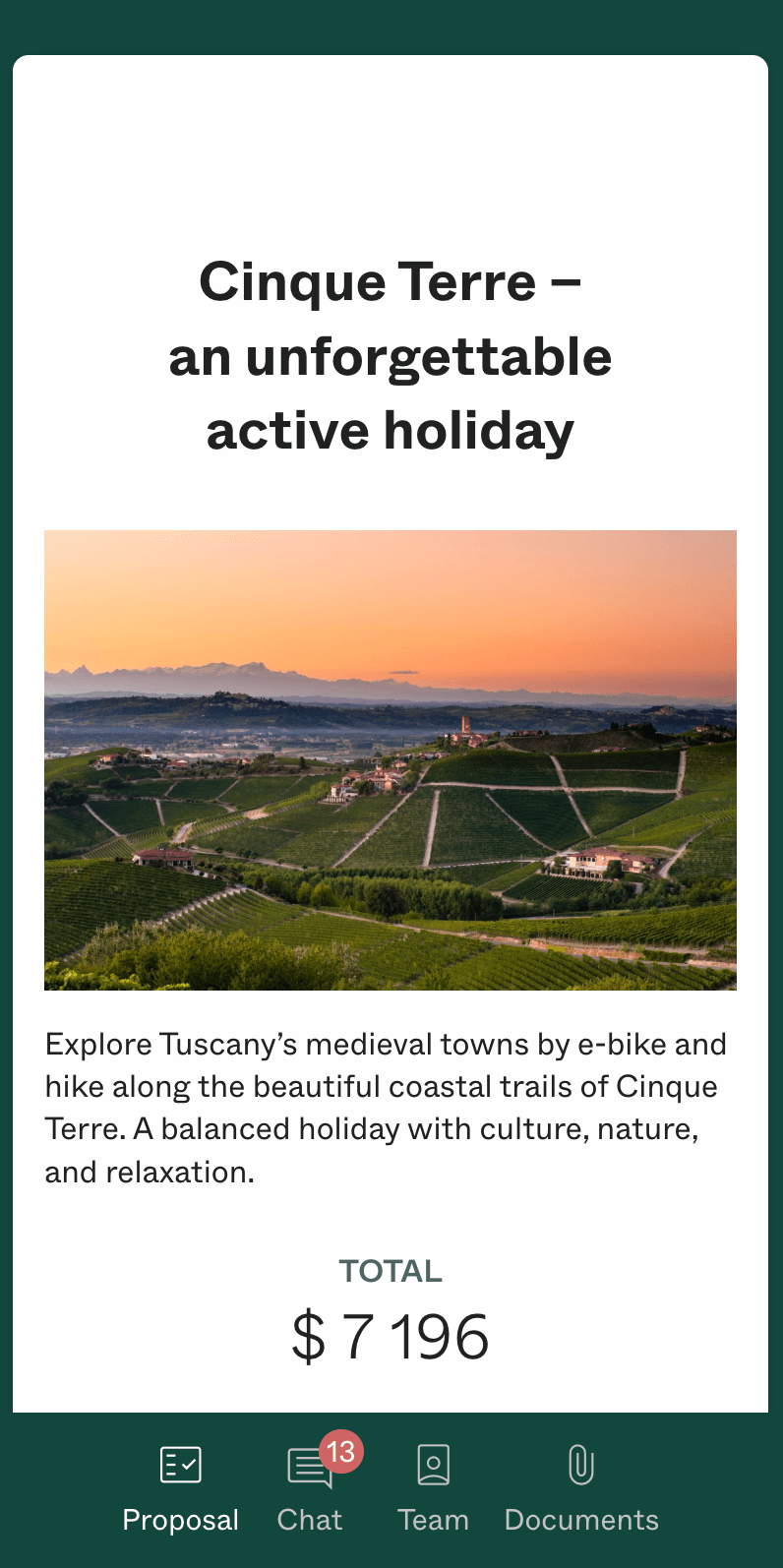 See what the client is most interested in β which optional extras they're considering and what they spend time on. Get notified every time they open the proposal.